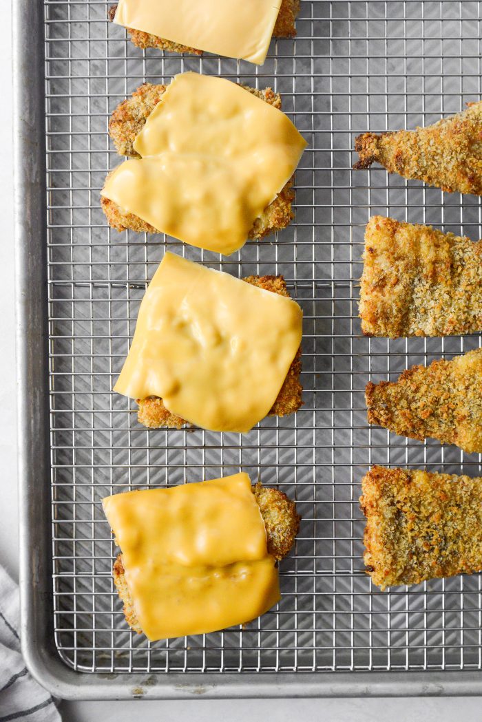 I like to save the larger pieces of fish for last so when I remove them I can top with a slice of cheese. The heat from the fish will melt the cheese.