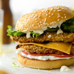 In this Crispy Fish Sandwich, old bay seasoned pollock is coated with a panko breadcrumb mixture and air fried until crispy. Two crispy filets are sandwiched on a toasted brioche bun with cheese, lettuce, tomato and a homemade tartar sauce! Yields 4 sandwiches.