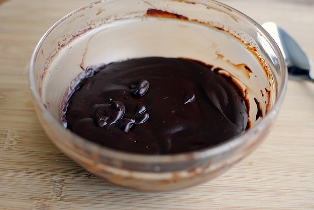 - Pour the hot cream over the chocolate and let that sit and slowly melt the chocolate.