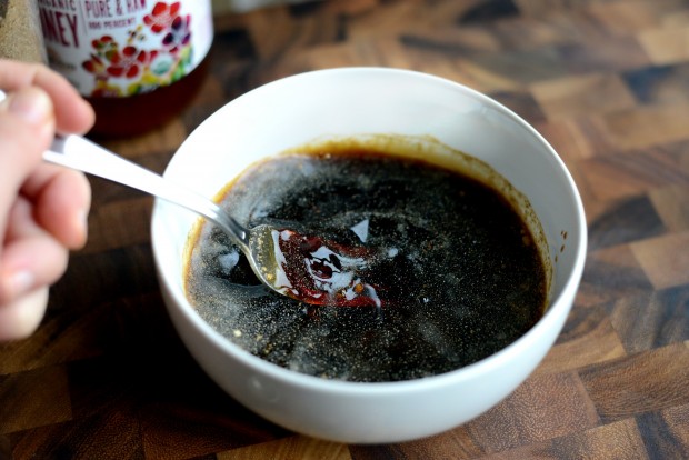 Whisk with a fork to break up the brown sugar, making sure that the honey gets dissolved throughout the sauce.