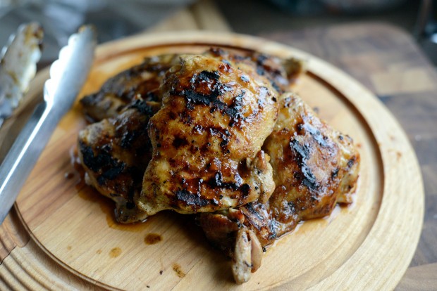 In the final few minutes of grilling, brush both sides of the chicken and grill for only a minute to caramelize the glaze. 1/4 cup will be perfect for 6 chicken thighs.