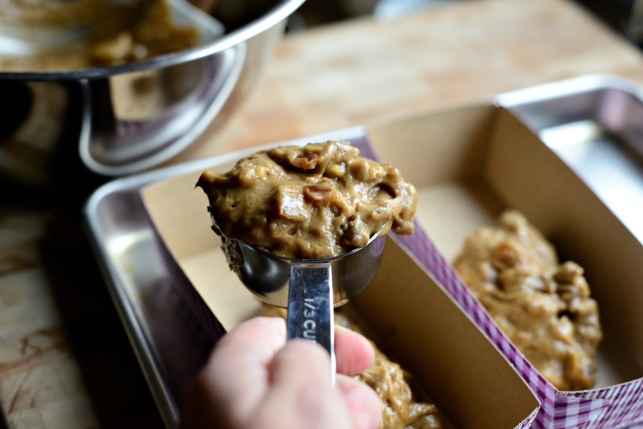 It’s a sweet, nutty and subtly cinnamon-y and way good. I wrap one and freeze it for impromptu coffee dates or impromptu hunger pangs. You could double the recipe, making 4 loafs, wrap them in cute little packages and handout as gifts. Tis the season and all that.