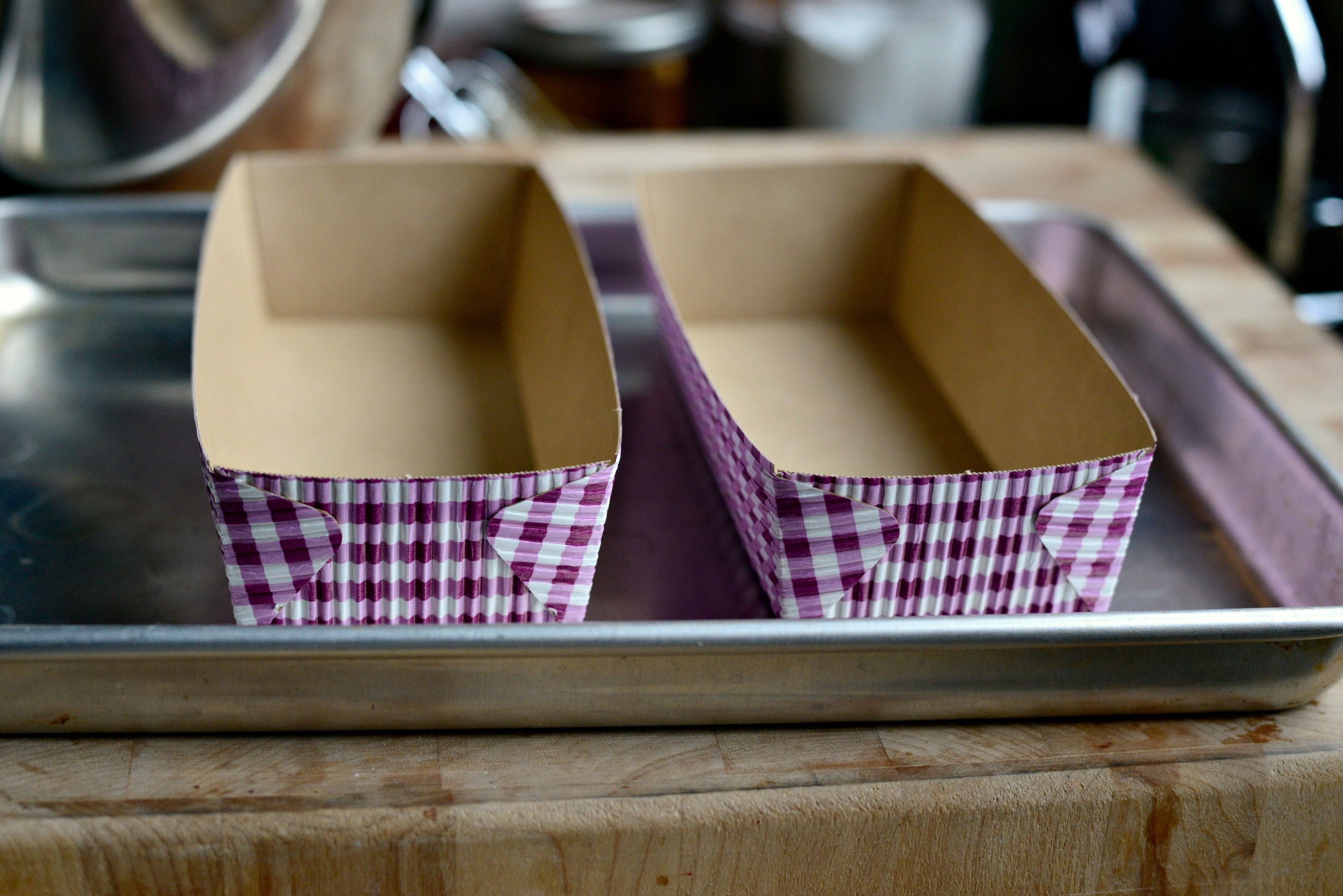- Grease two small loaf pans or use paper cardboard stand-alone liners.