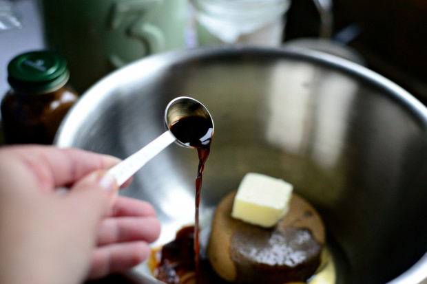 In a large-ish bowl add 3/4 cup dark brown sugar, 1 tablespoon of butter (I KNOW RIIIIGHT??)…