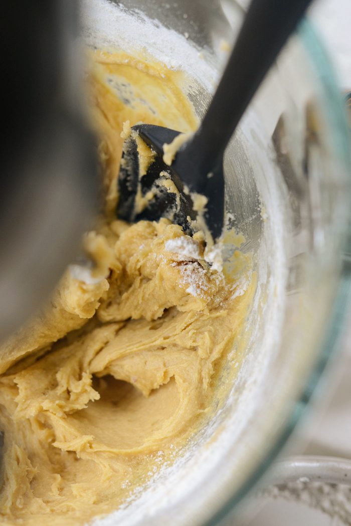 Scrape the sides and bottom of your mixing bowl as you go. Now it should be shaping up to resemble cookie dough.