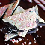 Let cool slightly. Remove dark chocolate from the fridge. Pour cooled white chocolate over top. Smooth out with a spatula {dark chocolate might smear a little if the white chocolate is too warm}. Sprinkle with the candy cane pieces, and gently press the pieces into the chocolate so they stick. Place the sheet pan back into the fridge to harden, about 20 minutes. Break apart and serve.